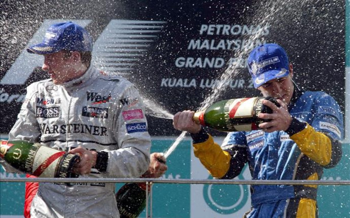 ¡Y así fue! El GP de Malasia de 2003 pasaría a la historia. ¡Kimi Räikkönen se imponía, en una carrera en la que dobló hasta al quinto clasificado, y firmaba su primera victoria! Segundo era Barrichello y el podio lo completaba… ¡FERNANDO ALONSO! Era el primero de su carrera deportiva, el primero de un español en el ‘Gran Circo’ y el más joven en conseguirlo.