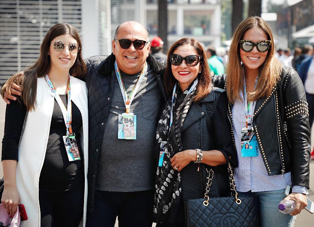 Carola está muy integrada en la familia Pérez, pudimos comprobarlo en el último GP Méjico . En la imagen la vemos junto al padre de Checo, con su madre y su hermana.