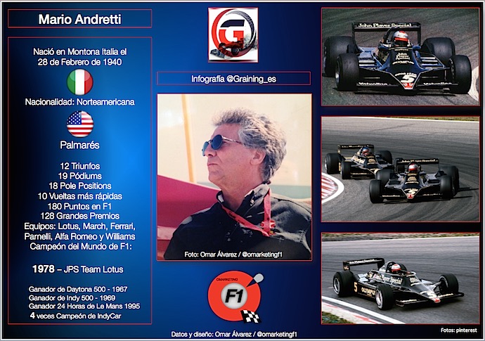 En 1978 conquisto el Mundial F1 manejando para el legendario equipo Británico John Player Special Team Lotus 78 Ford V8.