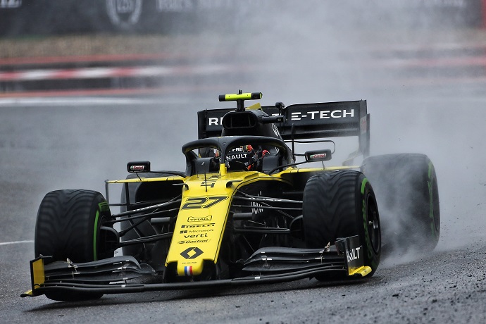 Hülkenberg parece ser la esperanza de los franceses y se mantiene entre el cuarto y quinto puesto, durante algunos kilómetros se coloca segundo, hasta que Bottas y su flecha plateada le dan un baño de realidad. Parte de su buen resultado fue no colocar neumáticos de seco, pero en la vuelta 41 pierde el control de su auto. En la curva 17 se va contra las vallas y nada puede hacer para volver a pista.