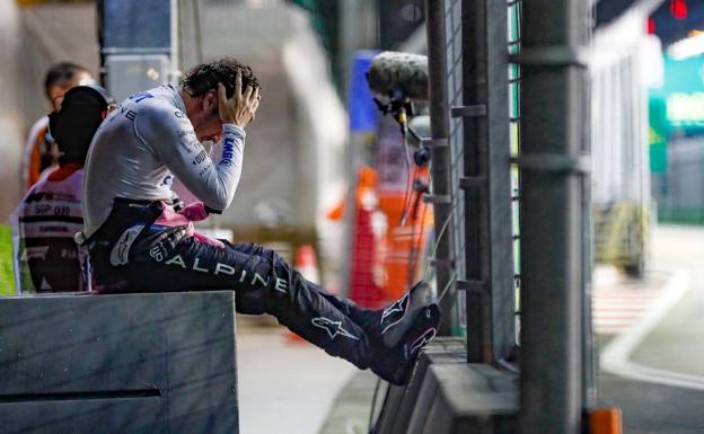 Por su parte Ocon no corría mejor suerte. El francés luchaba sin éxito en las últimas posiciones, ya que las condiciones de pista y el circuito en sí hacían muy complicados los adelantamientos. En la vuelta 27 y poco antes del cambio a neumáticos lisos, Esteban corría la misma suerte que su compañero y se retiraba de carrera por un problema en su unidad de potencia, dejando a Alpine con cero puntos en Singapur, y con posibles sanciones para Suzuka la próxima semana.