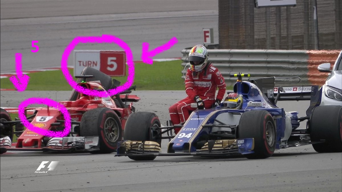 Sebastian quedó 4º en la carrera, y después de terminar, en la vuelta 5, sufrió un tremendo impacto en el Ferrari con su número 5 contra el monoplaza de Lance Stroll. En el caso de que el despiste del piloto canadiense (no censurado por la FIA) provocara en el Ferrari el cambio de la caja de cambios, Vettel sería sancionado con 5 posiciones en la parrilla del próximo GP Japón ¡Por favor Vettel! ¿Qué pasa con el 5? ?