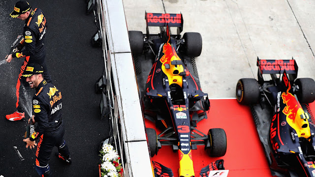 Hay que reconocer que Ricciardo tiene mucho mérito y sigilosamente va llenando la cesta de los puntos de Red Bull ¡Felicidades por el 3er lugar! Y ¡Enhorabuena a Red Bull por su primer doblete!