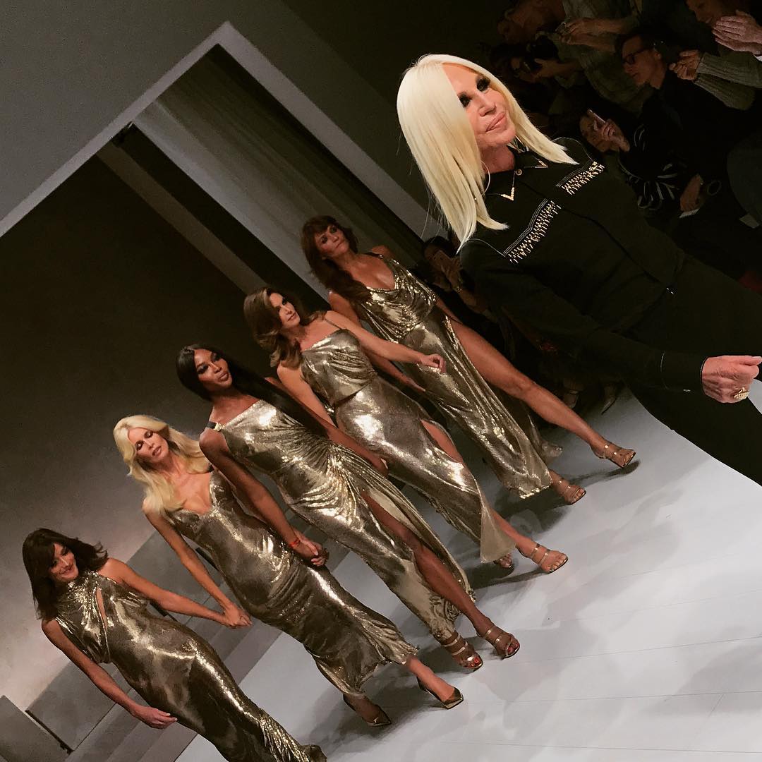 Y ¡Cómo no! Muy bien acompañado por las ‘súpermodelos’, término acuñado por el homenajeado Gianni Versace, hermano de Donatella. El desfile fue un tributo al asesinado diseñador en el 20º aniversario de su muerte.