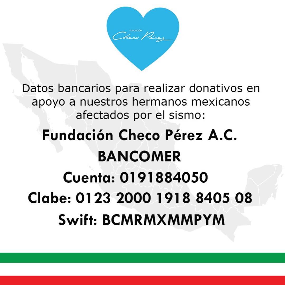 Desde aquí un inmenso abrazo a Checo, familia, amigos y a todos los mexicanos que están pasando por momentos tan amargos ¡Viva México! ?