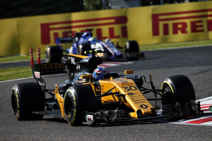 Este Gran Premio de Japón de 2017 ha sido el último en Fórmula 1, al menos con Renault, para Jolyon Palmer. El británico consiguió realizar una carrera muy fuerte escalando seis posiciones, pero como salió muy  atrás por una penalización, ha finalizado 12º, con lo que no ha sido capaz de puntuar. Su compañero de equipo Nico Hülkenberg se tuvo que retirar al atascársele el DRS mientras rodaba quinto.