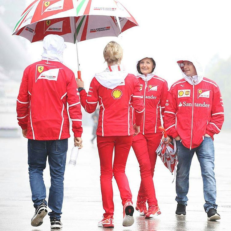 En la imagen se encuentran Vettel y Kimi Raikkönen, con sus respectivas jefas de prensa. Como dice la canción de Chenoa “Cuando tú vas, yo vuelvo de allí…”