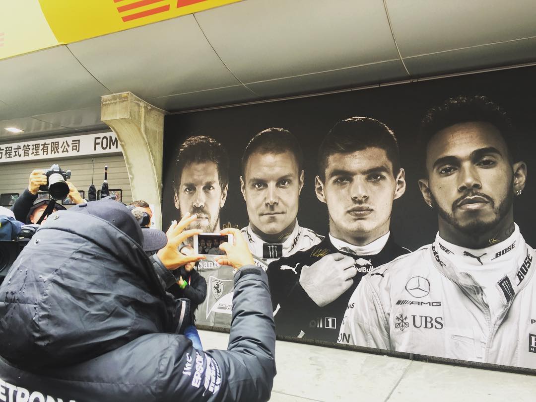 El mural también le llamó la atención a Hamilton, campeón del GP China. Y ¡click! Otra foto para el recuerdo. ?
